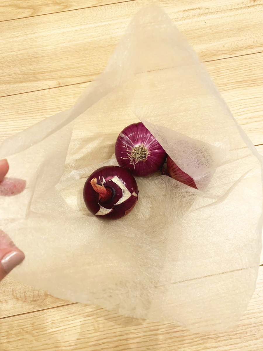 一度、ネットの代わりに不織布を使って常温保存の包み方を