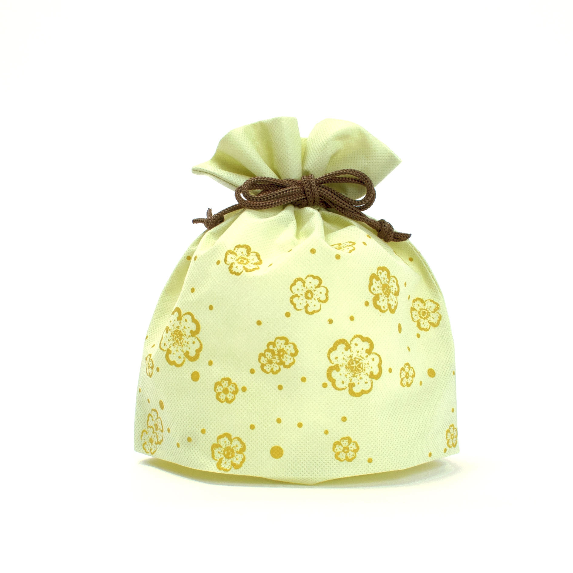 ラメ印刷の花柄が印象的な和風巾着です。